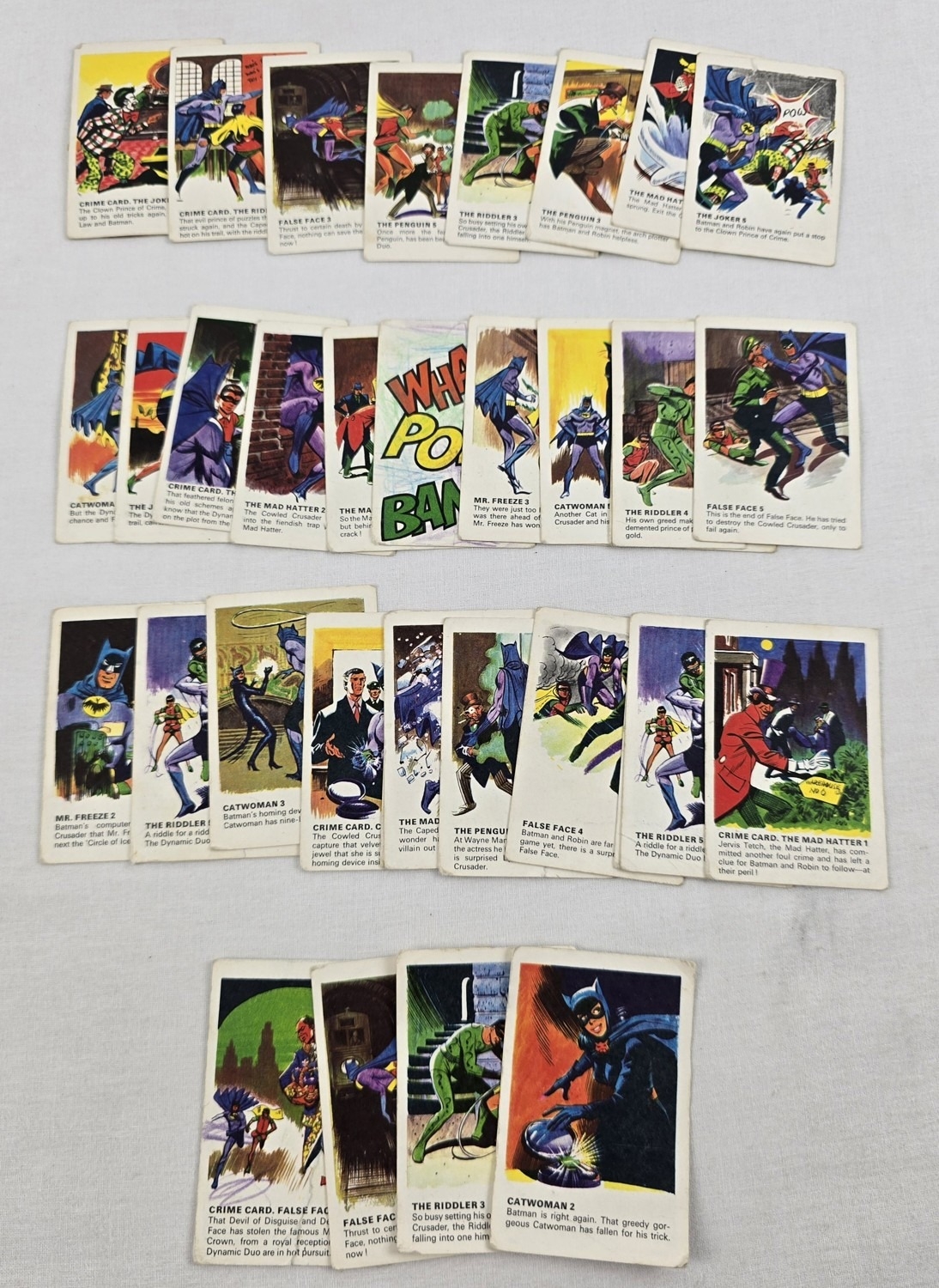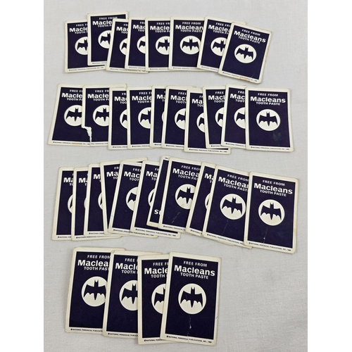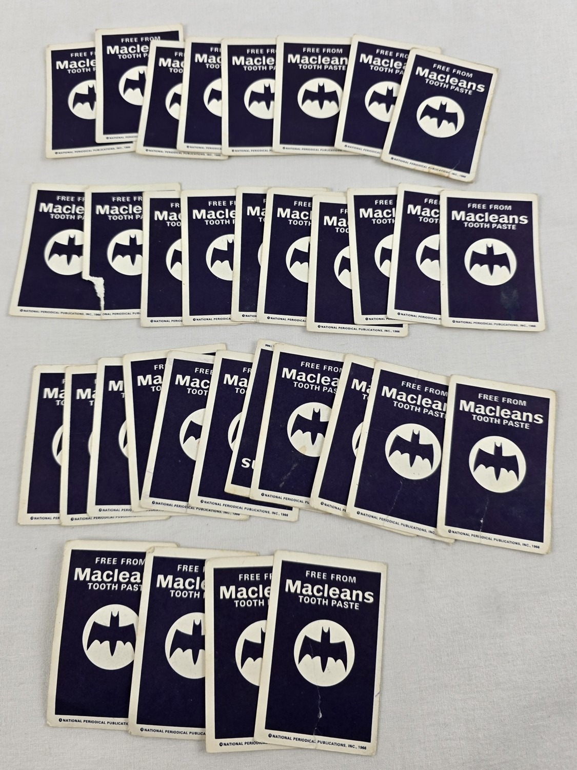 34 assorted Macleans toothpaste Batman trading cards from 1966. 2 cards are stuck together.