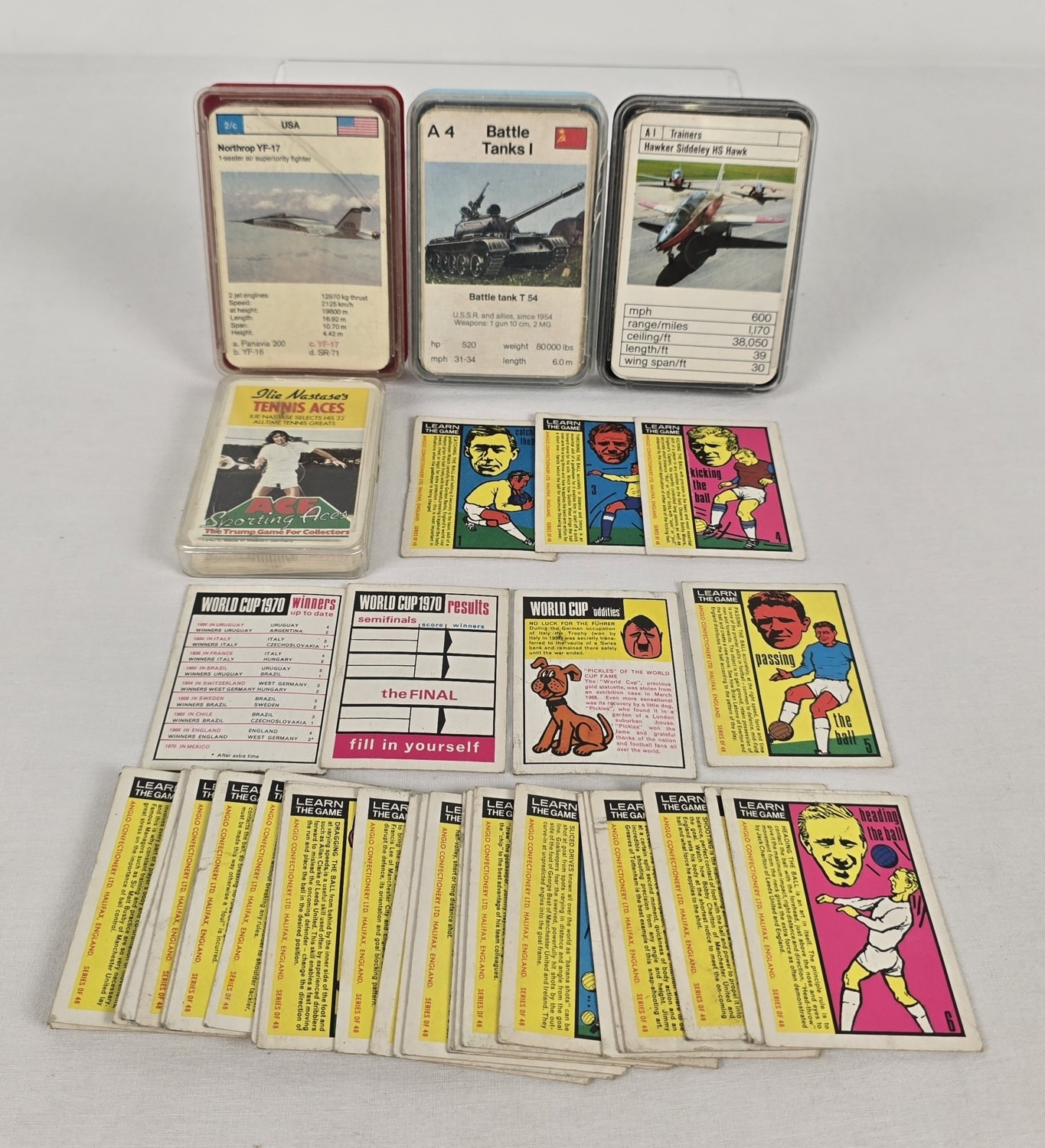 4 vintage sets of Top Trumps cards together with 33 World Cup 1970 Anglo Confectionery cards. Top Trumps to include Military planes, Tanks and Ilie Nastase's Tennis Aces.