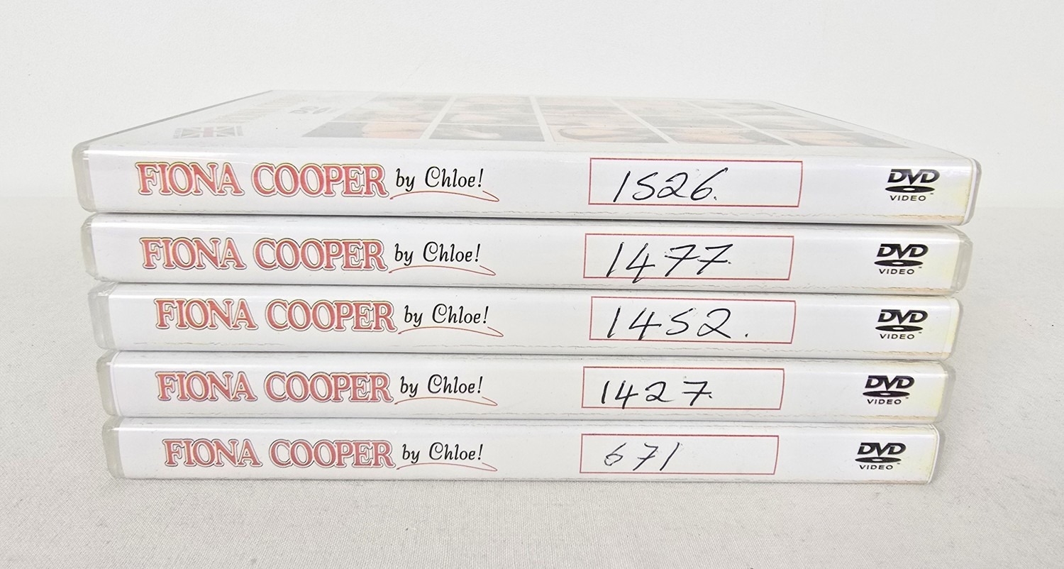 5 assorted Fiona Cooper adult erotic DVD's in hard plastic cases. With hand written catalogue numbers.
