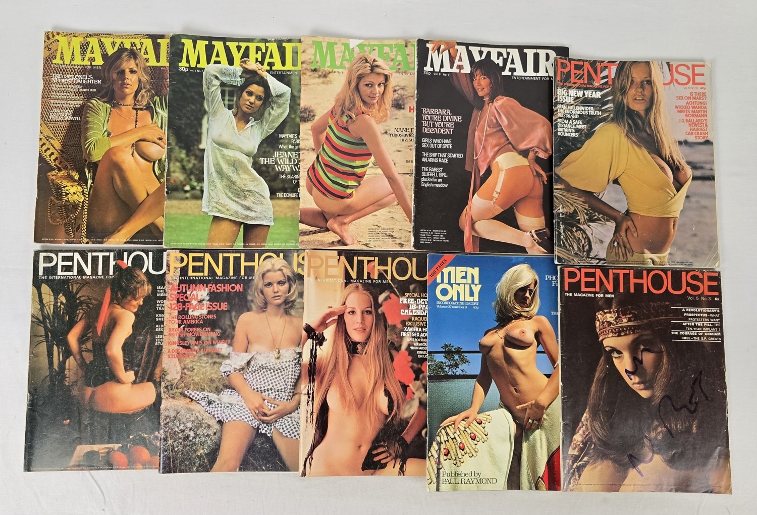 10 early 1970's issues of Mayfair, Penthouse and Club International, adult erotic magazines.