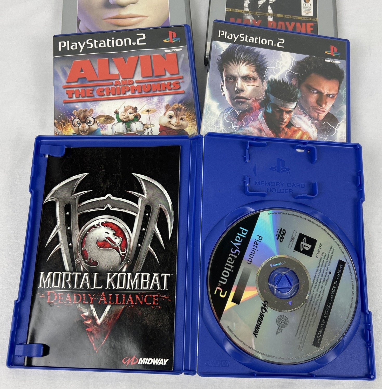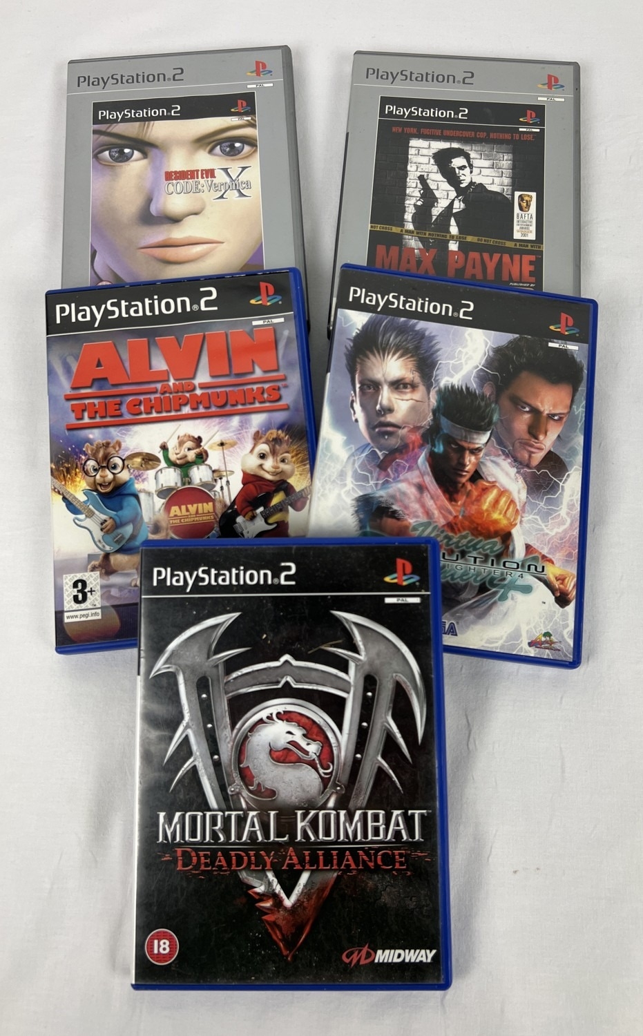 5 assorted PlayStation 2 games. Resident Evil, Max Payne, Mortal Kombat Deadly Alliance, Virtua Fighter 4 and Alvin & the chipmunks. All with original booklets.