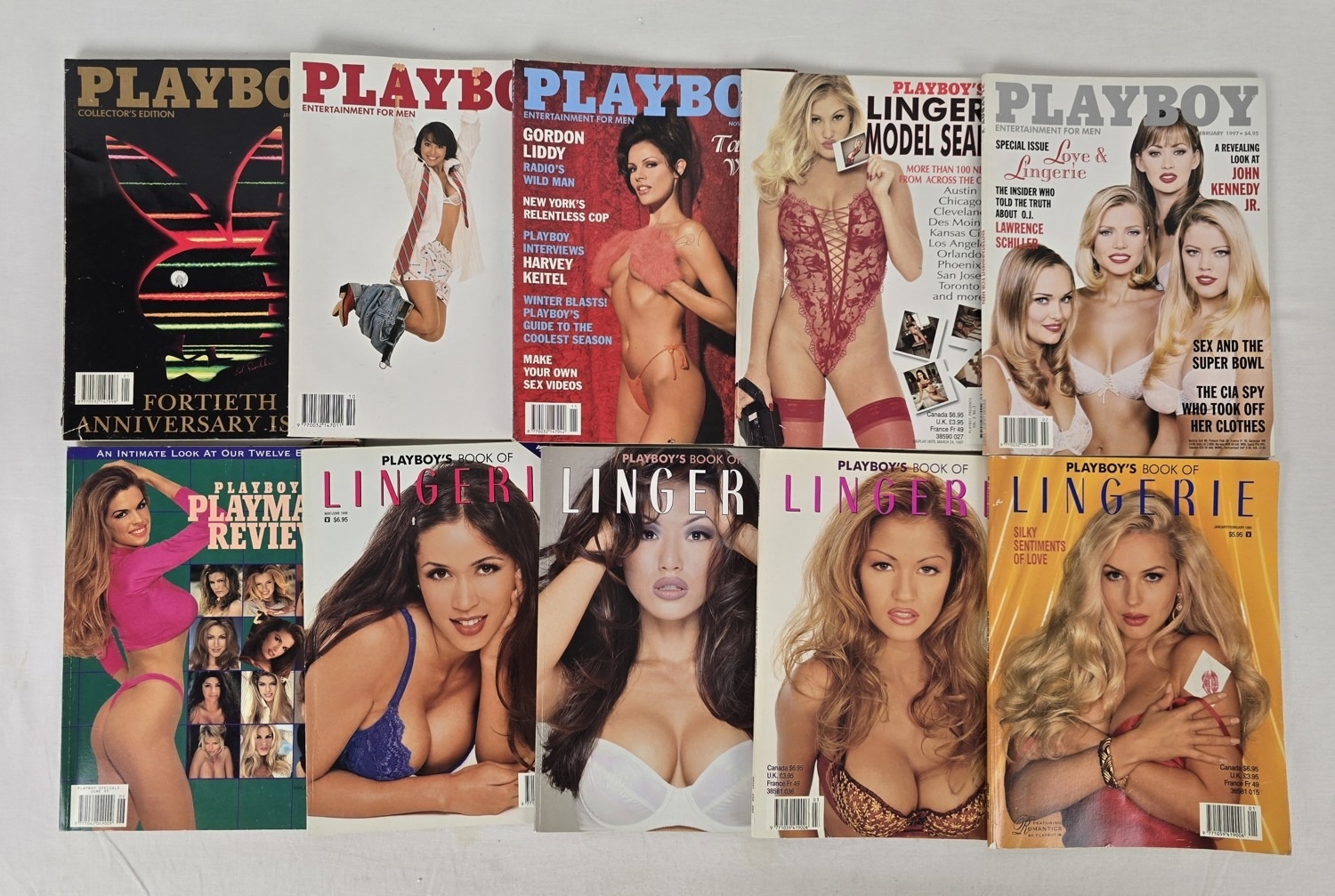10 assorted 1990's issues of Playboy to include 4 issues of Playboy's Book of Lingerie, Playmate Review, Lingerie Model search and Fortieth Anniversary Issue.
