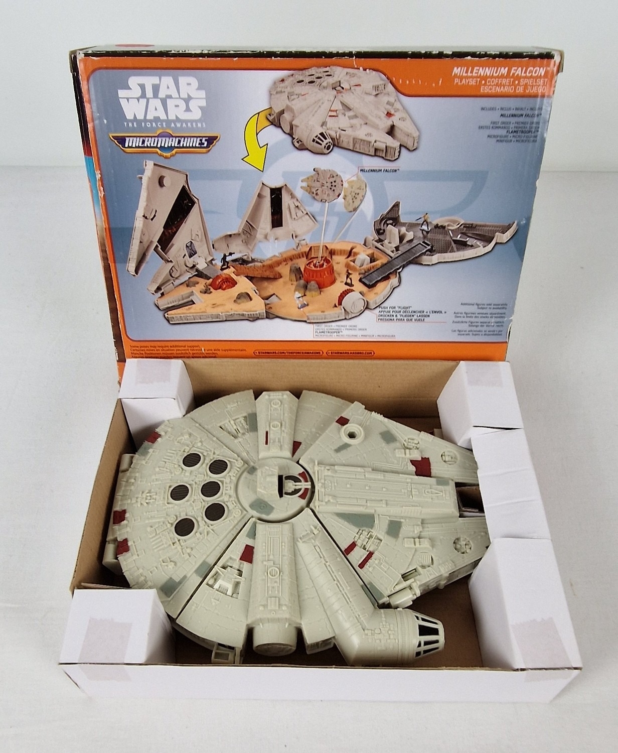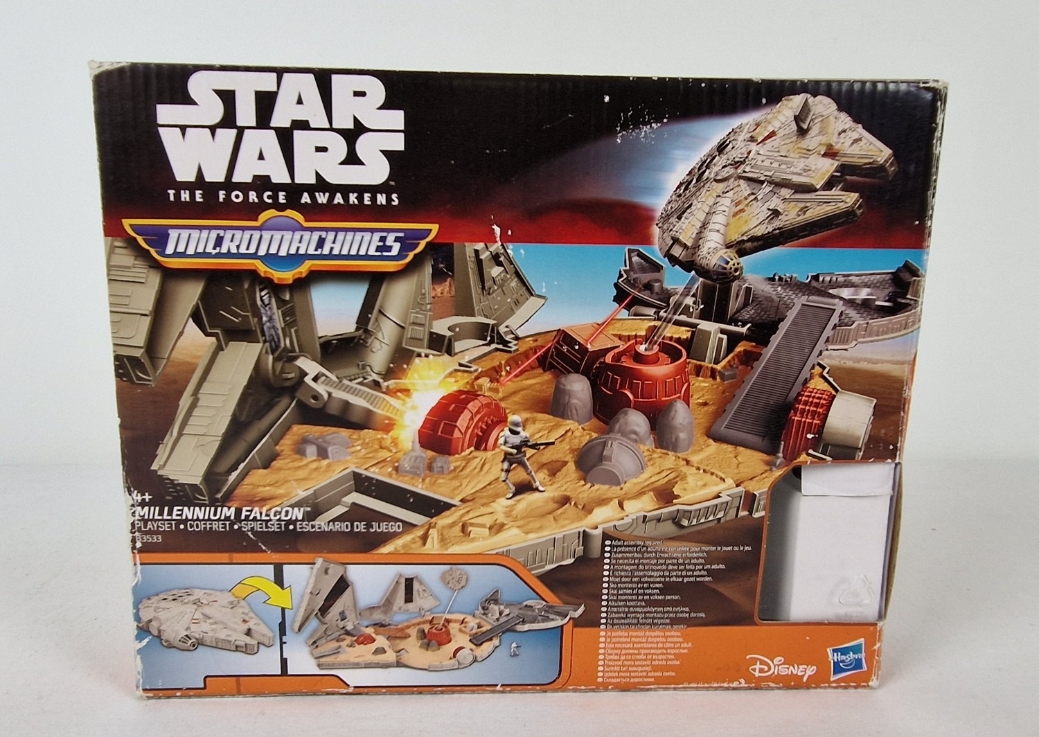 Boxed Micromachines Star Wars The Force Awakens Millennium Falcon Playset from Hasbro 2015. Micro figure missing.